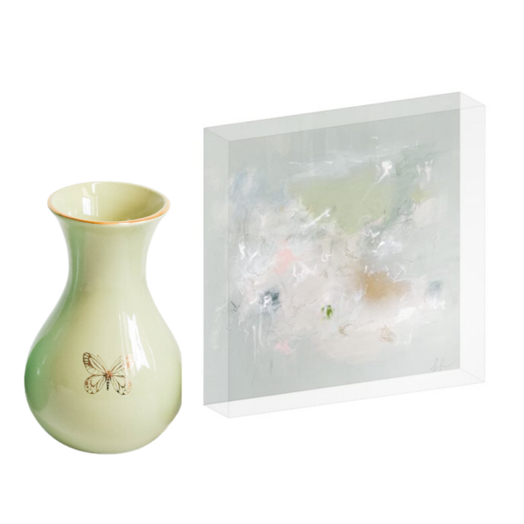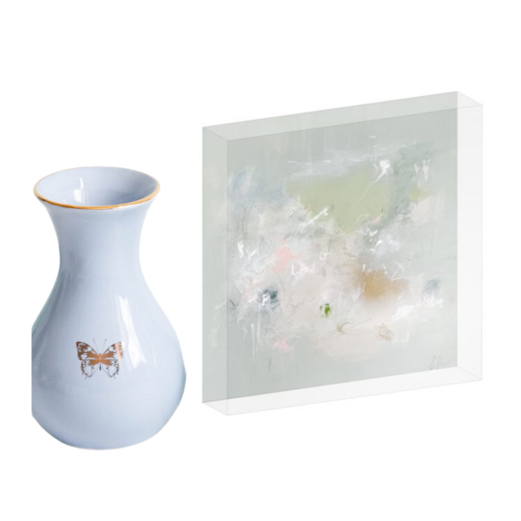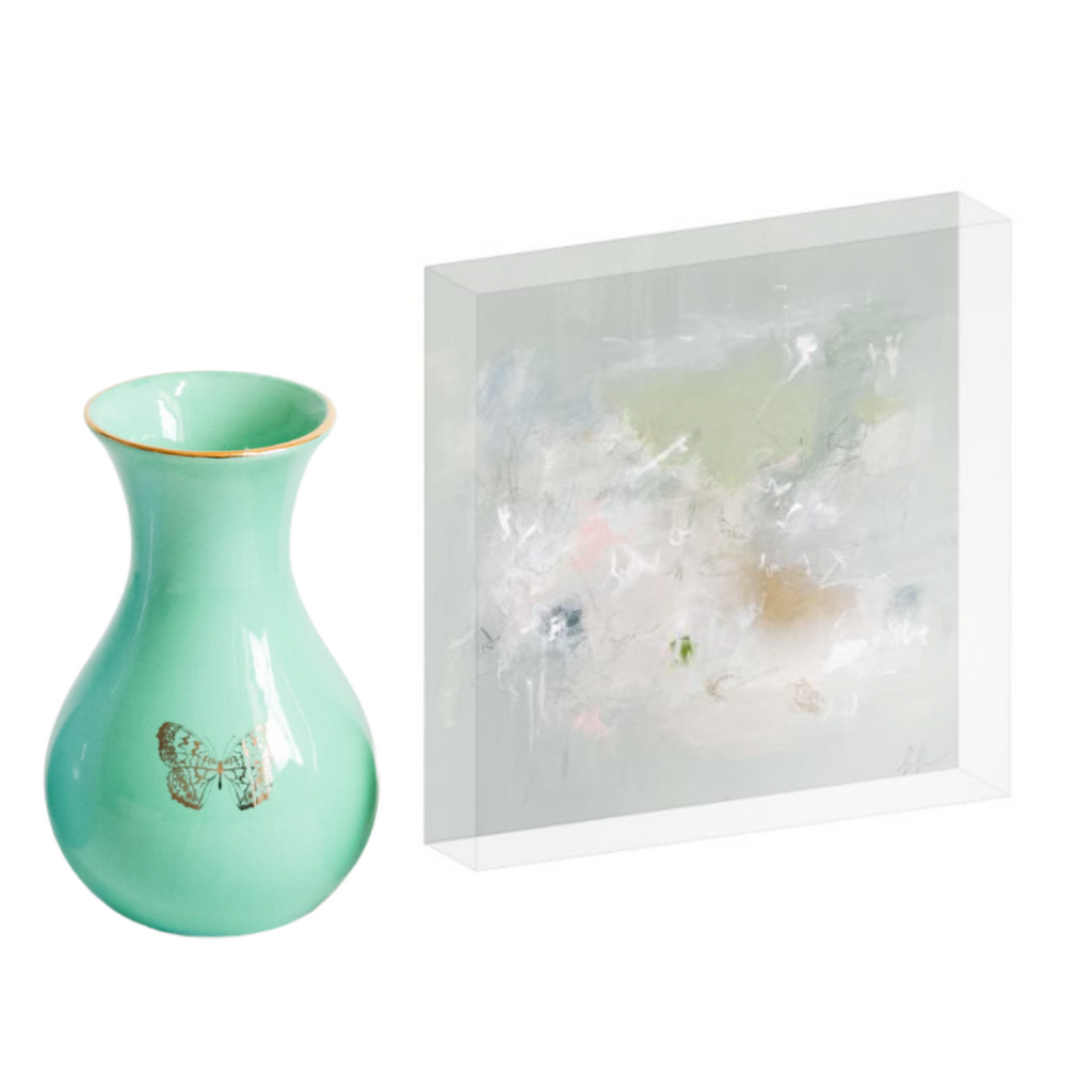 The Collaboration that we all have been waiting for! Susan hand picked her Butterfly Emilene Vases in jade, french blue, and sage to compliment with the colors featured in Katherine's "Mother Knows Best" acrylic block print. These one of a kind gift bundles are limited edition and only available until items sell out.