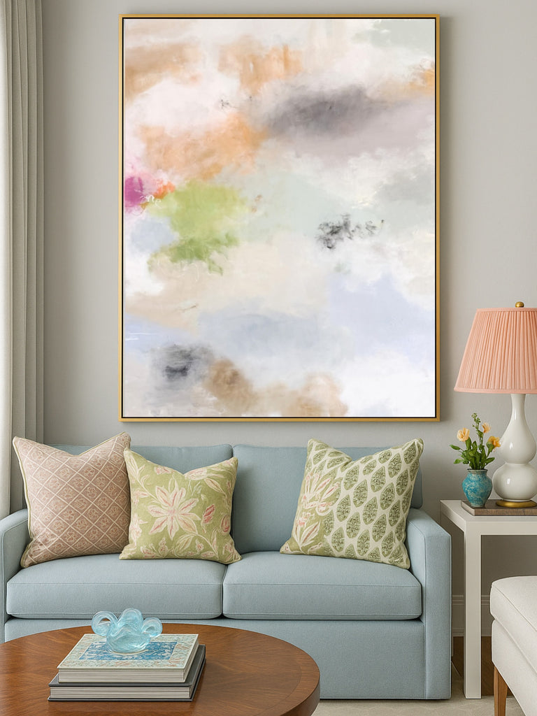 Bold, breezy, and impossible to ignore—Let Me Bayou a Drink is a celebration of southern charm with a splash of playful indulgence. This large-scale abstract piece draws inspiration from the spirited colors of a cocktail at golden hour. Expressive brushstrokes and layered texture give the painting depth and movement, like a lazy summer breeze drifting through mossy trees. Both joyful and grounding, this piece brings personality to a space while still offering moments of calm amidst the color. It’s the life of the party—but still knows how to relax.